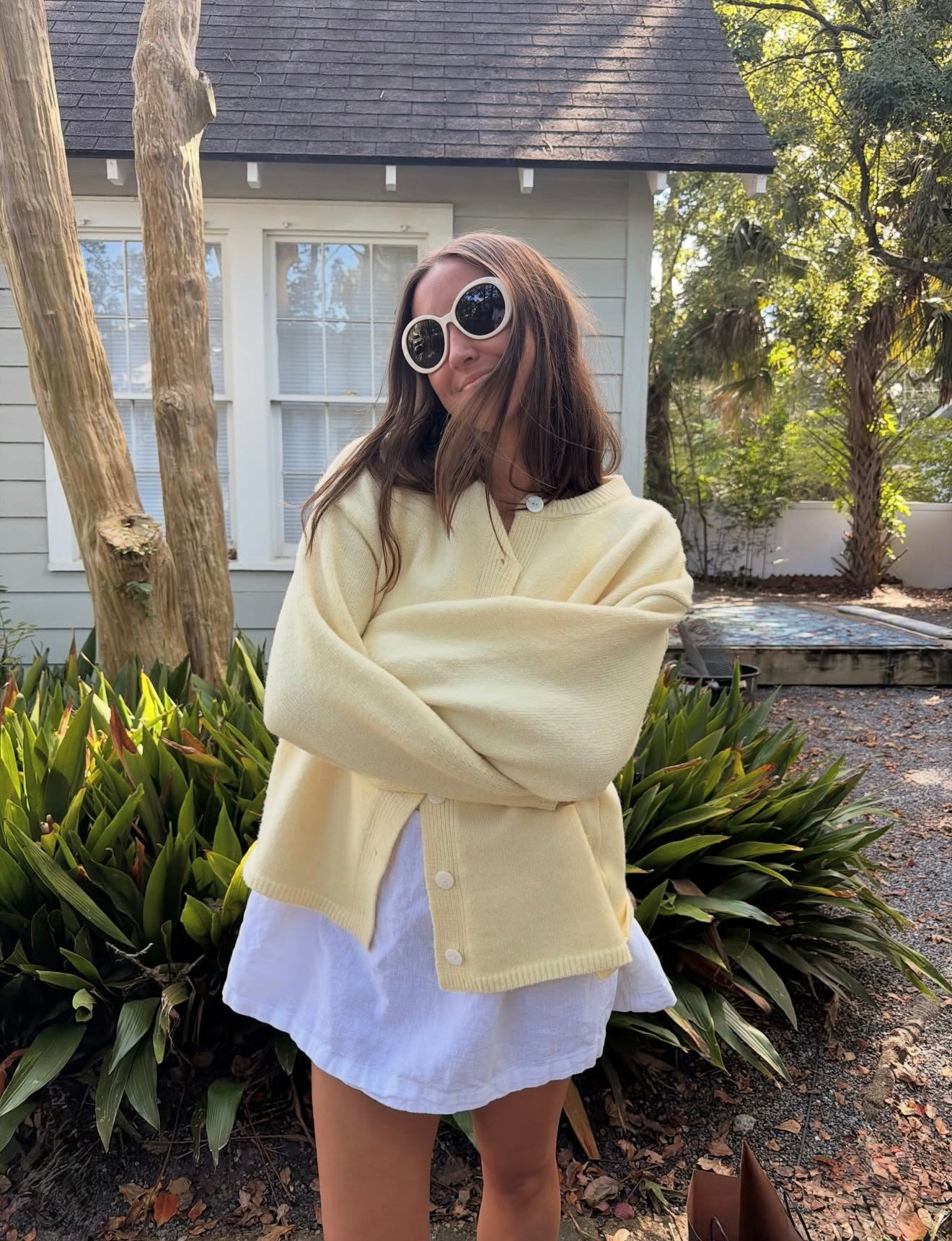 Elle Grey Zara Navy Striped Button Cardigan Sweater