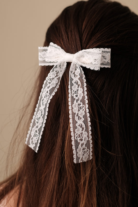 White Lace Bow Hair Clip