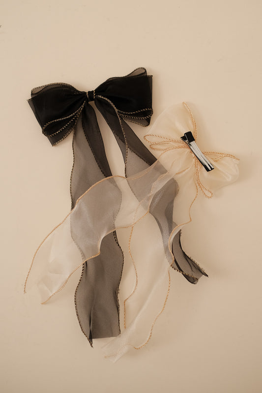 Chiffon Gold Trim Bow Ribbon Hair Clip (Two Colors)