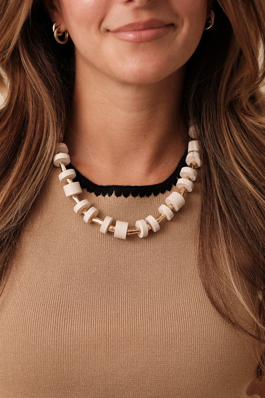 Natural Wood and Gold Beaded Necklace