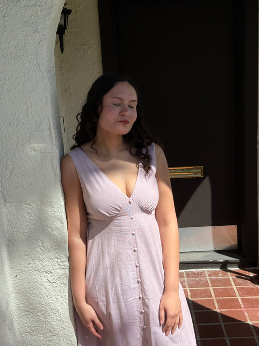 FRNCH Naidy Red Pinstripe Tank Buttoned Midi Dress