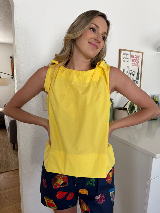 PINCH Brooke Yellow Tie Detail Cotton Sleeveless Top (M)