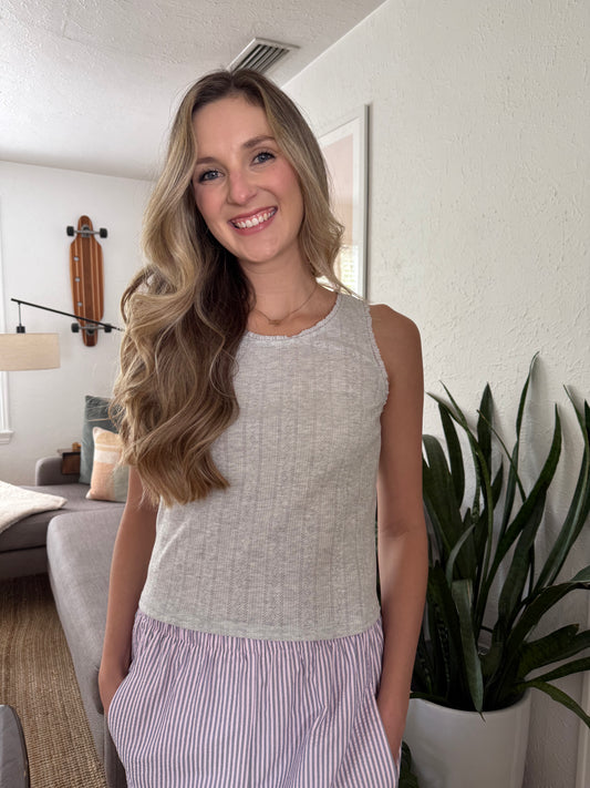 Miou Muse Freya Cotton Pointelle Tank Top (Grey) M