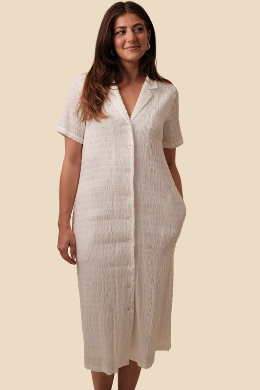 FRNCH Coline Woven Crinkled Collar Shirt Midi Dress (White)