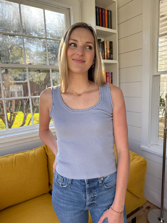 Lucy Paris Kaley Blue Knit Ruffle Tank Top