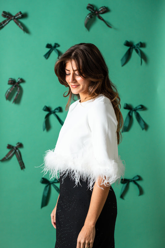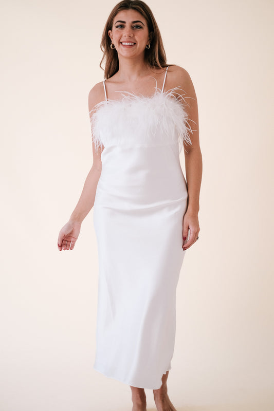 Lucy Paris Flora Feather Trimmed Slip Midi Dress (White) M