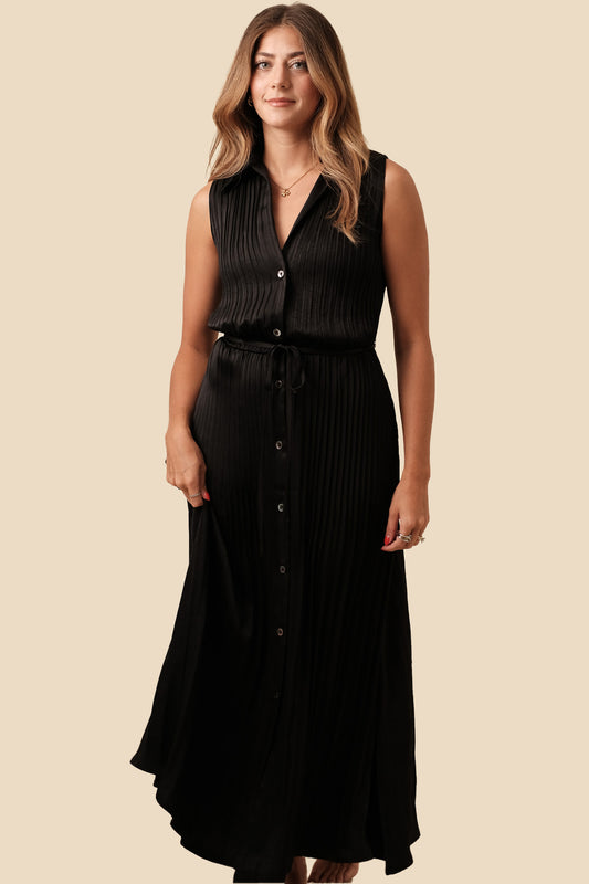 Current Air Vivian Plisse Buttoned Midi Dress (Black) XS