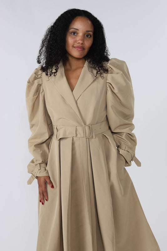 Sofie the Label Claudia Trench Puff Sleeve Trench Midi Dress (S)