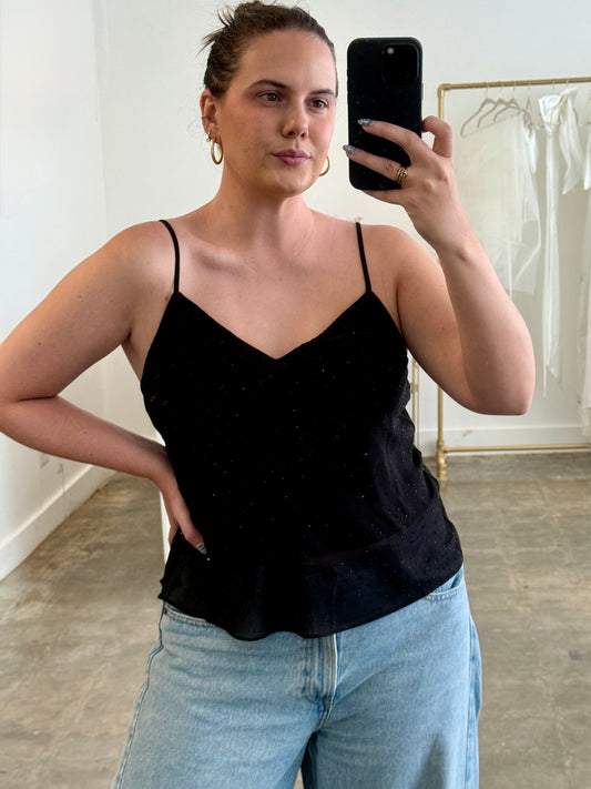 Lucy Paris Carla Rhinestone Black Sheer Sleeveless Top (M)