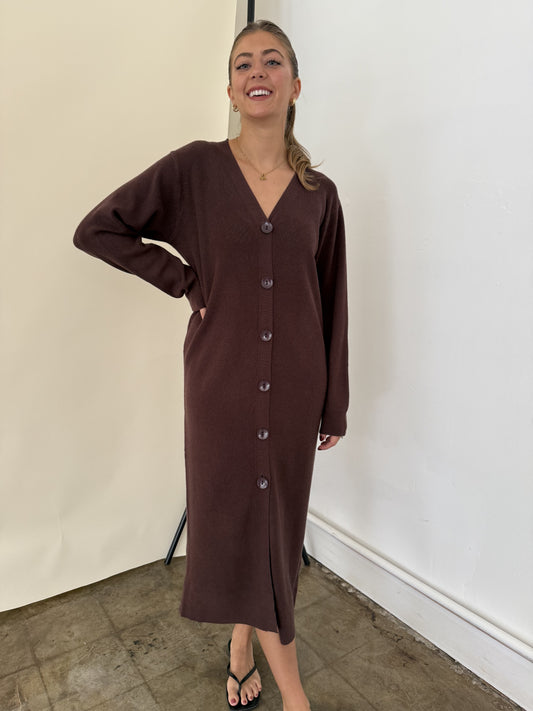 PINCH Mason Chocolate Knit Long Sleeve Midi Dress (S)