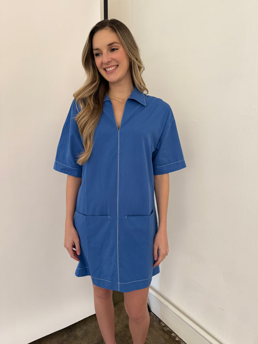 PINCH Sienna Contrast Stitched Collared Mini Dress (Black)