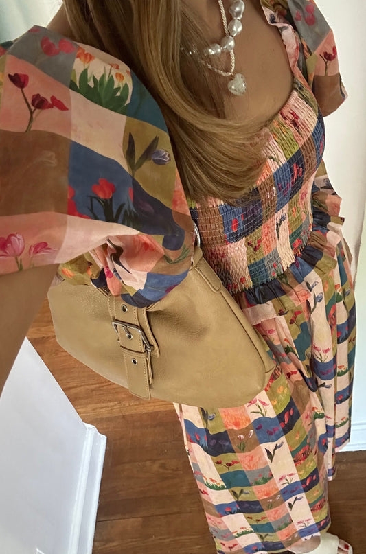 PINCH Jade Red Star Printed Puff Sleeve Mini Dress