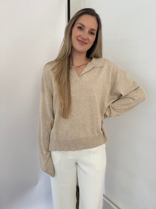 Things Between Aiden V-Neck Collared Pullover Sweater