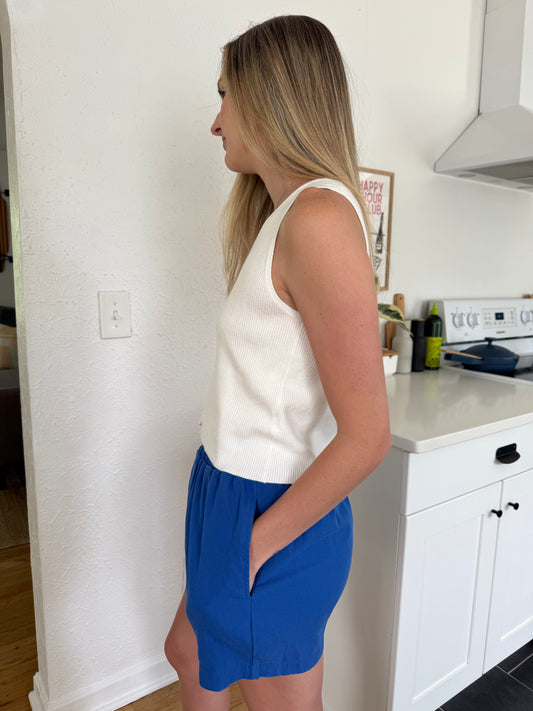 Things Between Grady Relaxed Cotton Elastic Shorts (Blue) S