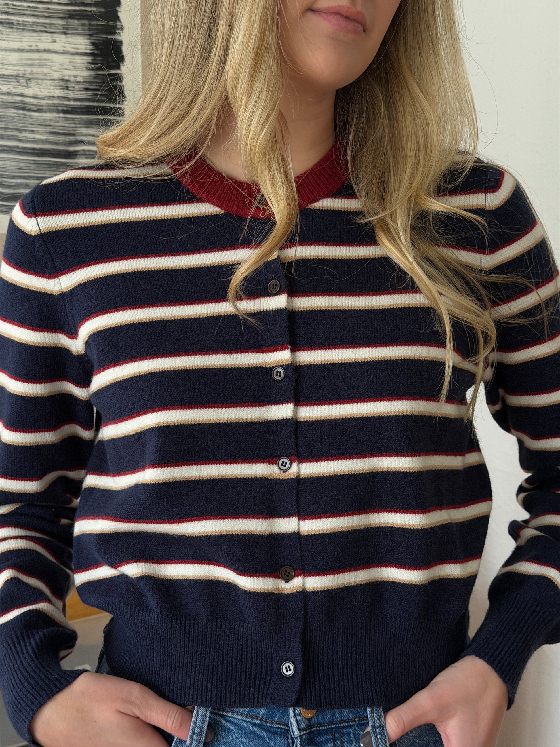 Elle Grey Zara Navy Striped Button Cardigan Sweater