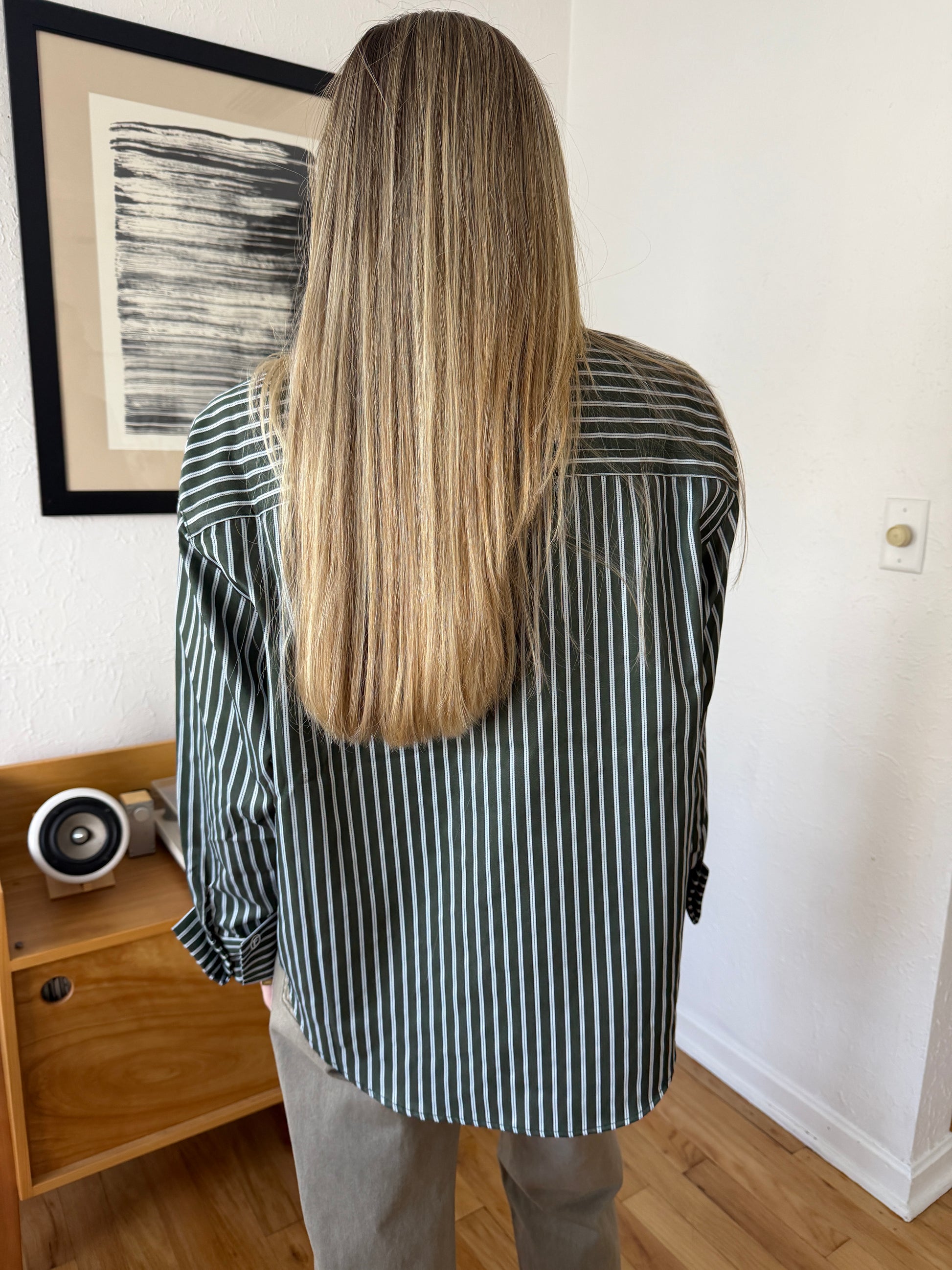 FRNCH Chester Green Striped Buttoned Collared Shirt