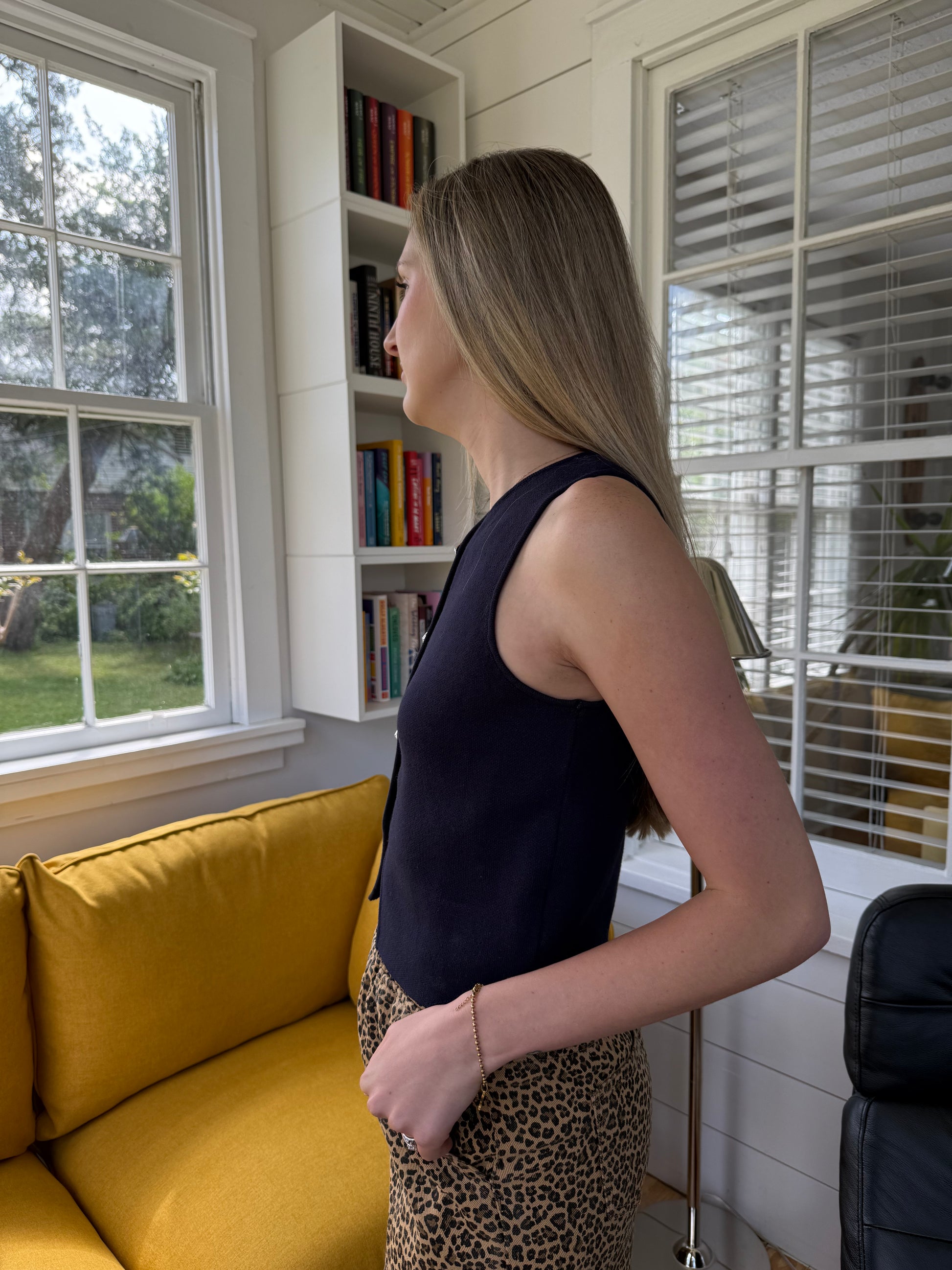 Miou Muse Briar Metal Buttoned Sleeveless Top (Navy) L