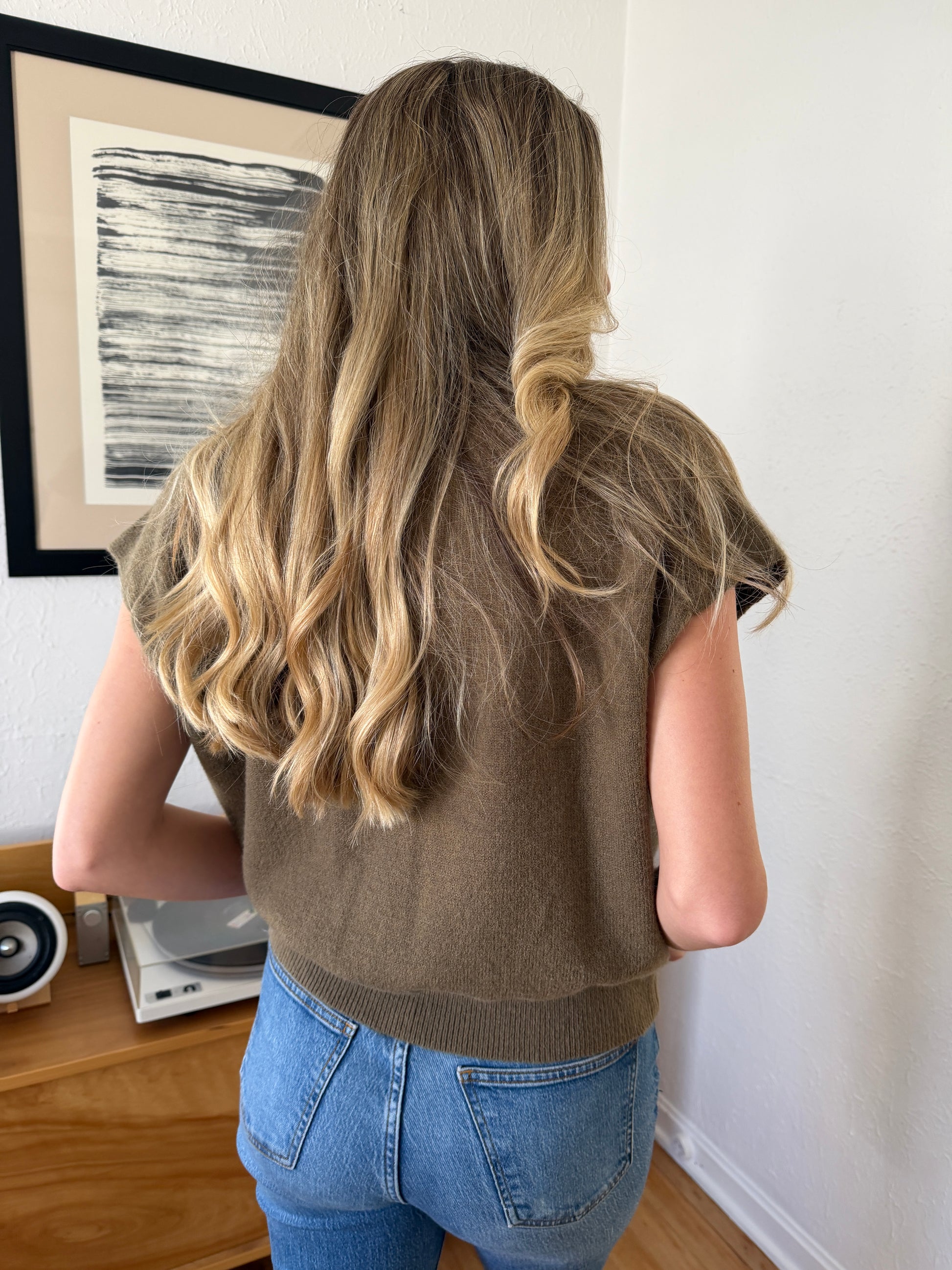 Miou Muse Victoria Short Sleeve Soft Knit Top (Olive)